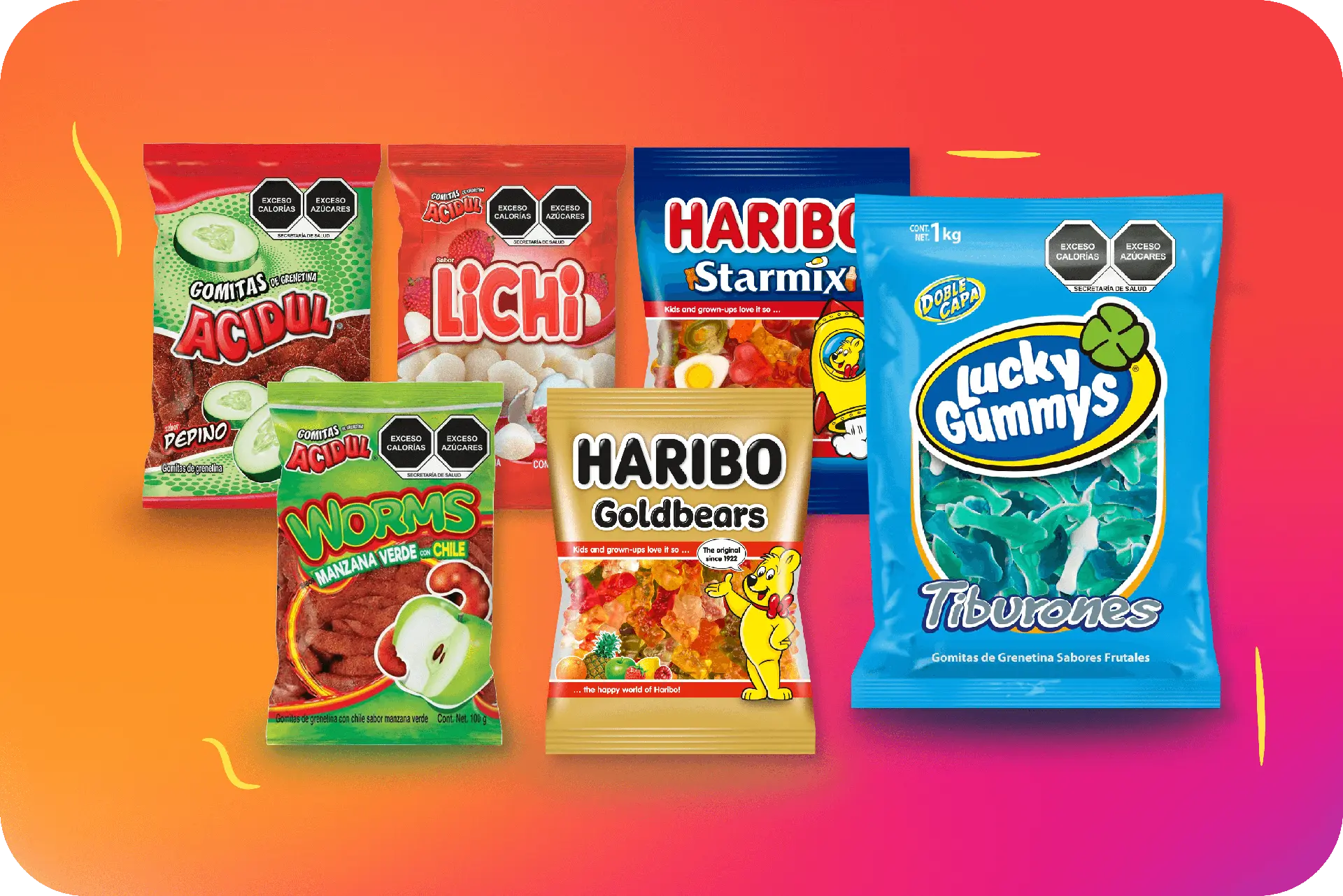 Gomitas suaves, frutales y mega coloridas. Ideales para regalar, compartir o comértelas tú solito.